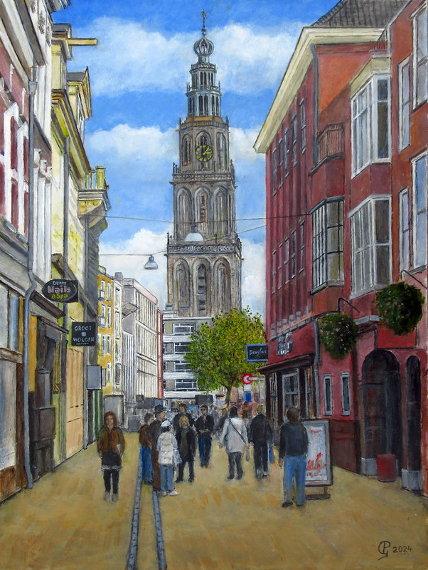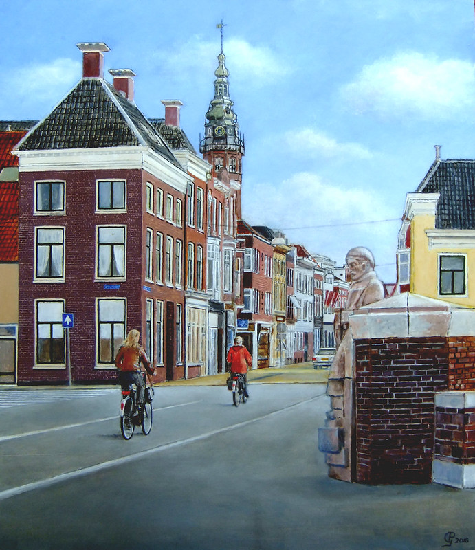 Piet Groothuizen (1951) schildert sinds 1980. Aanvankelijk als autodidact, maar daarna volgde hij lessen bij een aantal bekende schilders in Groningen om de fijne kneepjes van de schilderkunst onder de knie te krijgen. Zijn voorkeursonderwerpen: stadsgezichten, landschappen, stillevens en vogels.